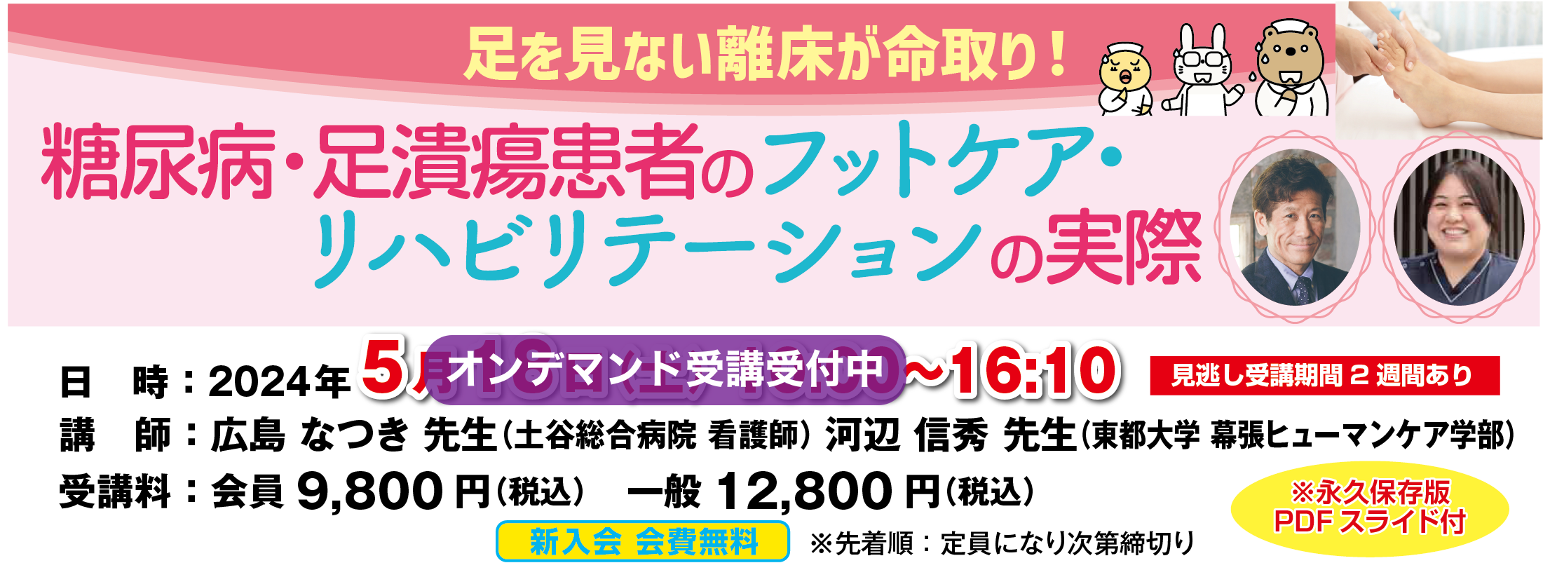 糖尿病患者さんの離床は、血糖コントロールや合併症、足潰瘍など問題が多く困りもの。そんな問題をしっかりアセスメントして、解決に導く具体策を学ぶシリーズが登場。離床を促しながら、患者中心に進める糖尿病ケアと、足病に対するフットケアについての具体策を専門家が徹底解説してくれます。