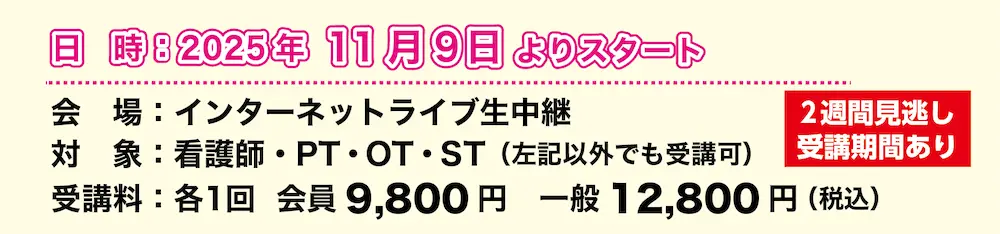 ※上記各1講座受講で離床アドバイザー理論1単位・学会認定資格更新 10 ポイントを取得することができます。