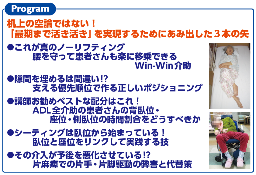※「達人に学ぶ動作介助・体位管理の勘ドコロ」受講で離床アドバイザー習得コースの理論コース0.5単位を取得できます。