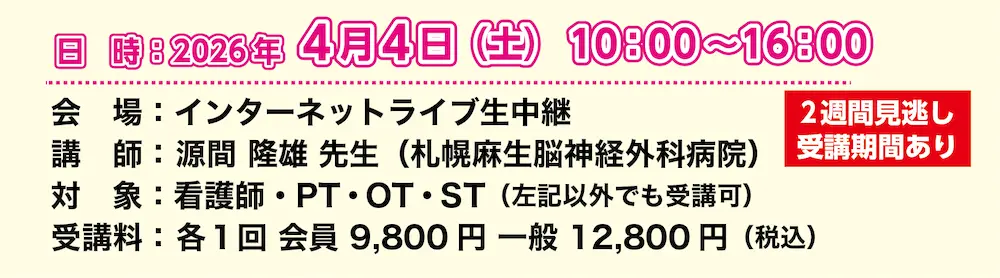 ※上記シリーズ講座受講で離床アドバイザー基礎単位2単位(実技・理論各1単位)・学会認定資格更新20ポイントを取得することができます。