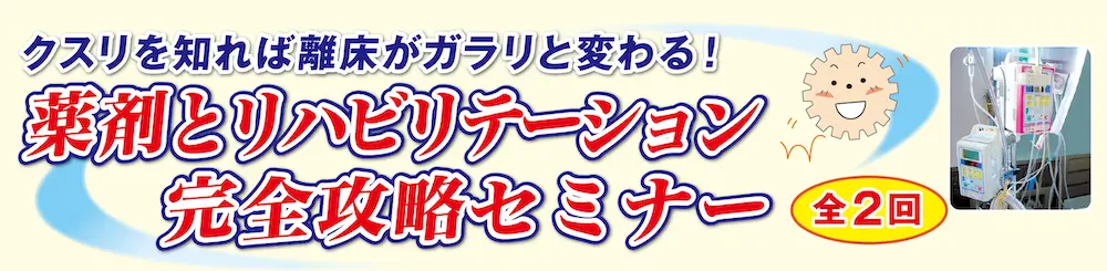 薬剤のことを知らずに離床をすると、どのようなリスクがあると思いますか? 血圧低下、失神、転倒、出血など、さまざまなリスクがあるため、そのまま離床、ではダメ! そのままでは、思わぬ血圧低下を招いたり、状態悪化を招くかもしれません。この講座では、薬効・副作用と離床との関係を学ぶだけでなく、患者さんのADL アップのポイントや多職種での情報共有のコツまで幅広く学びます。さあ、あなたもこの講座を受講して、薬剤と離床のフカ~イ関係を学び、不安を解消してみませんか?