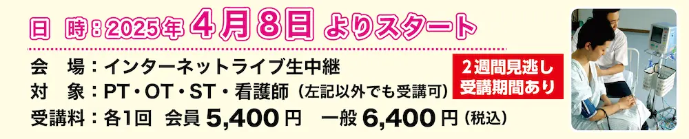※これらの講座は離床アドバイザー取得コースの理論0.5単位・学会認定資格更新5ポイントを取得することができます