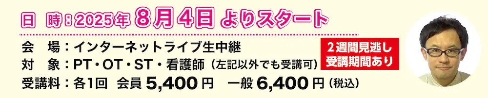 ※これらの講座は離床アドバイザー取得コースの理論0.5単位・学会認定資格更新5ポイントを取得することができます