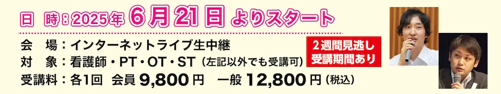 ※各1回のみの受講も可能です。 ※これらの各講座は離床アドバイザー取得コースの理論1単位・学会認定資格更新10ポイントを取得することができます