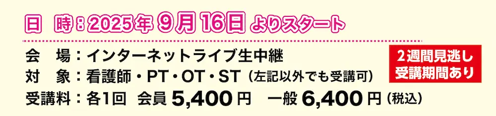 ※上記各1講座受講で離床アドバイザー理論 0.5 単位・学会認定資格更新 5 ポイントを取得することができます。