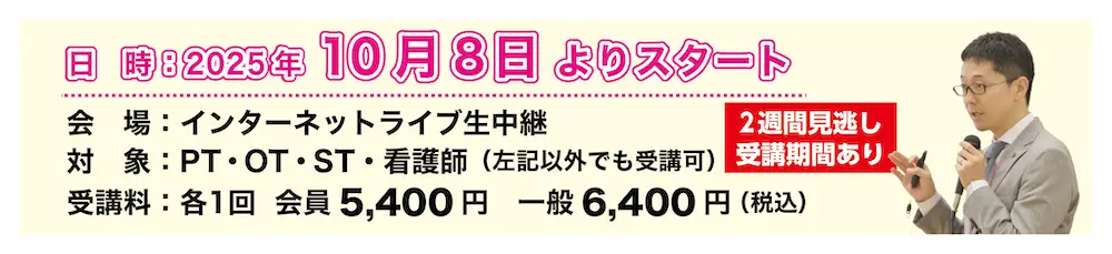 ※これらの講座は離床アドバイザー取得コースの理論0.5単位・学会認定資格更新5ポイントを取得することができます