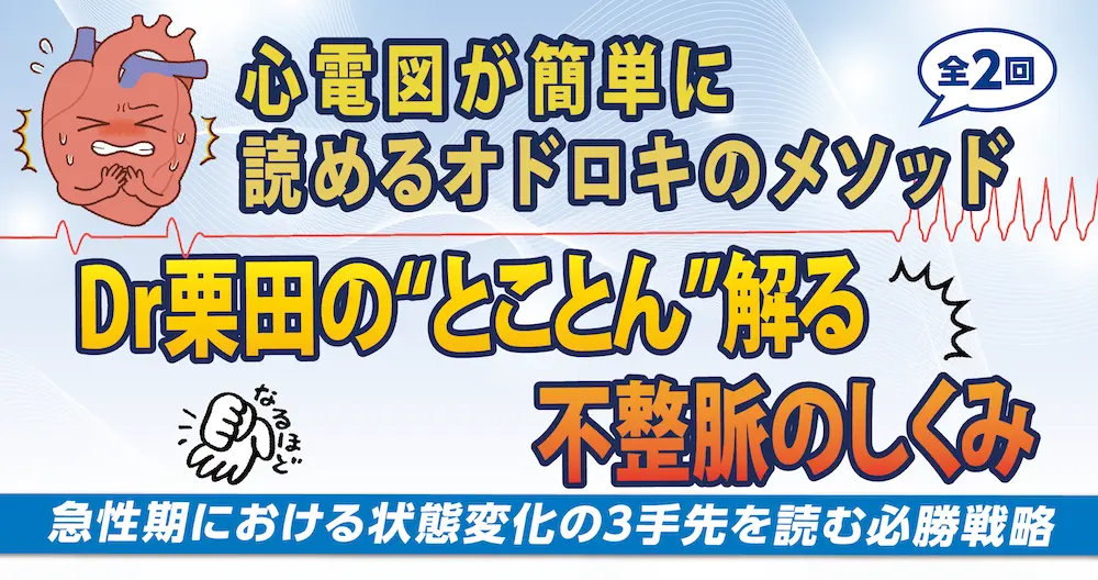 「心電図波形を読めるようになりたい!」と張り切って、いきなり心電図波形とにらめっこしていませんか?実は、その勉強のやり方はNG。不整脈の“しくみ”を理解していれば、心電図波形は簡単に読めるようになるのです。この講座では、循環器診療の第一線で活躍する栗田先生が、不整脈のメカニズムと治療戦略を伝授。これを知ることで、心電図波形が読めて、不整脈に対して臨床でスグに行動ができ、離床可否の判断もできる、三方良しの循環マスターを目指すことができます。さあ、一歩踏み出して、魅惑の不整脈ワールドに飛び込んでみませんか?