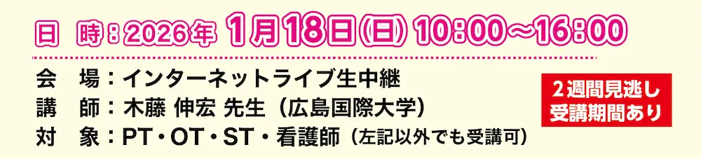 ちゃんと評価してリハビリを実施しているのに「あまり良くなっていないかも…」と悩んでいませんか?それ、広い視点から障害を診る、“多角的”な臨床眼が足りないのかも。このコースでは、症状の「組み合わせ」から、機能障害の本質を見抜く方法を徹底解説。どこにアプローチをすべきか、多角的な臨床思考から見破るすべを学びます。「的確な評価から、いつもベストアプローチしたい!」そんな願いを叶える夢の講座、いよいよ開講です。