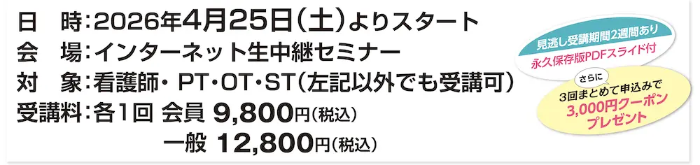 ※上記各1 講座を受講すると、離床アドバイザー取得コースの理論1 単位・学会認定資格更新10ポイントを取得することができます。