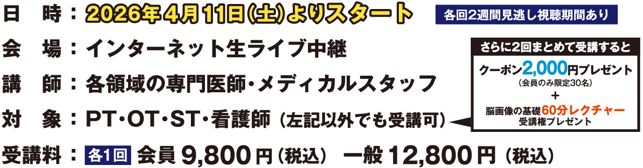 脳画像が読める、憧れのスタッフに今こそ生まれ変わりませんか?「脳画像をゼロからしっかり学びたい」方から、「病態理解や回復予測をさらに深めたい」ベテランの方まで、レベルアップできる新シリーズが登場!脳画像のエキスパートが、脳卒中の病態・予後予測や、難しい高次脳機能障害と画像の関連について、わかるまで徹底的に教えてくれます。今回限定の特別企画、奮ってご参加ください!
