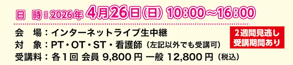 こちらの申込・決済は「「痛み」を解消して離床が”グン”と進む究極のメソッド 全3回」で、お間違いありませんのでご安心ください。