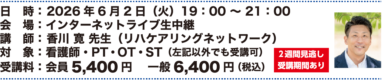 重度褥瘡、超出血傾向、HFpEFなど、動かしたくても動かせない…そんな“離床が進まない”難渋例に直面したとき、安易に離床を諦めて、患者さんのADLがドンドン下がっていませんか? この新コースでは、一見離床ができないように見える難渋例に、ベテランが実際にどのように判断し、リスクを見抜き、どのように動いているのか「限界突破アセスメント」と「動き方」を、リアルな臨床思考で徹底解説します。遭遇した瞬間に思考が止まってしまうようなケースも、ベテランが積み重ねてきた経験と処世術を学び、限界を突破して患者さんを回復に導ける自分へ、一歩踏み出してみませんか?