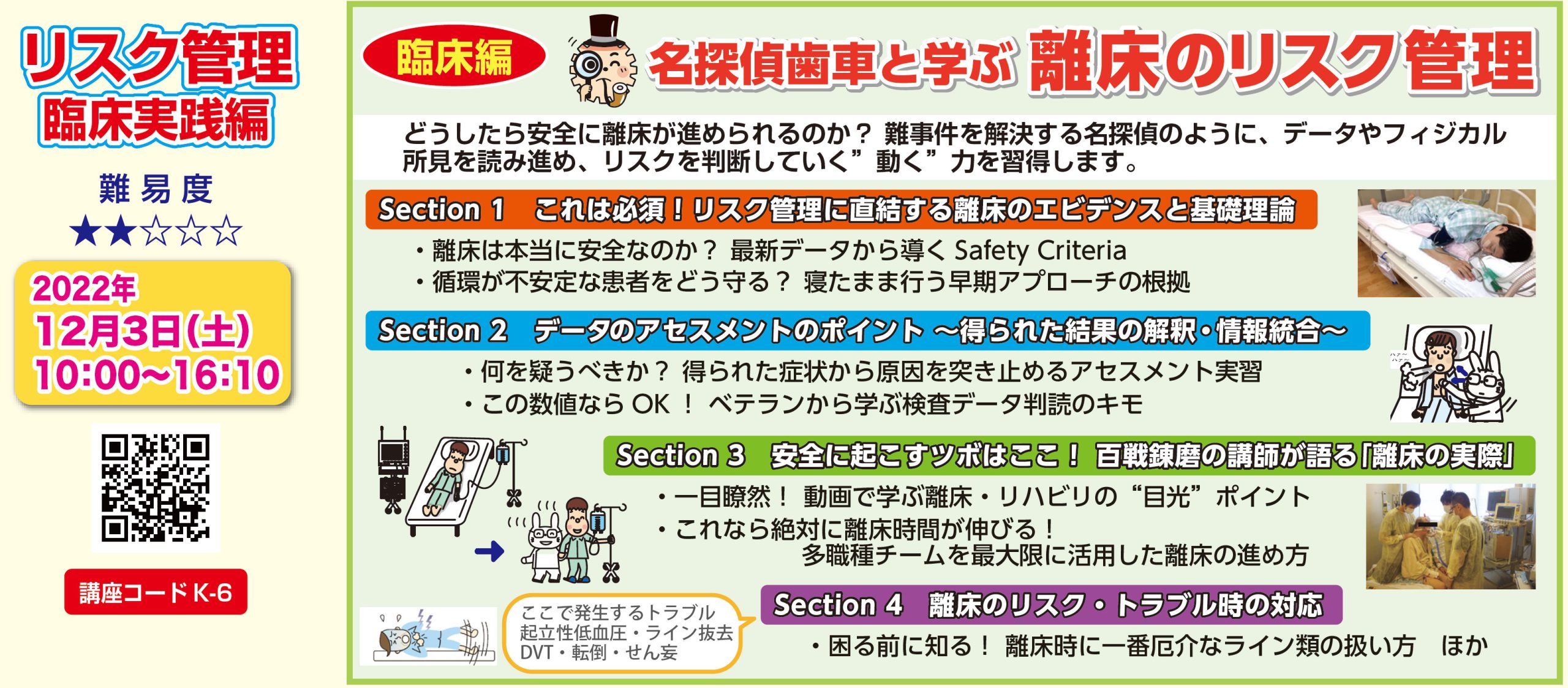 トップページ教育セミナー【見逃し受講受付中】百戦錬磨のプロが本気で教える離床のリスク管理全2回コース ※上記各1 講座受講で離床アドバイザー基礎単位2 単位(実技・理論各1 単位)を取得できます。 ※セットではなく各回受講を希望される方は、各回のページよりお申込み下さい。