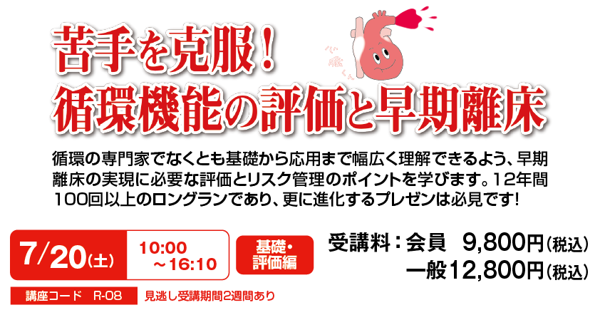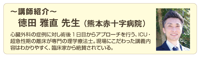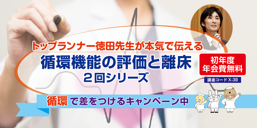 循環と離床のトップランナーとして走り続ける徳田先生の講義が、いよいよシリーズで登場!そもそも循環ってなにをみればいいの?という循環アレルギーを解消する循環の基礎から離床の進め方を学ぶ講座と、「息切れ」「ドキドキする」「手足が冷たい」など循環不安定な症状を患者さんが訴えた時に、何をみて、どのように動けばよいのかを臨床ベースに教えてくれる実践講座。どちらも見ごたえ抜群!循環×離床のエースから一気に学べる滅多にないチャンス、お見逃しなく!