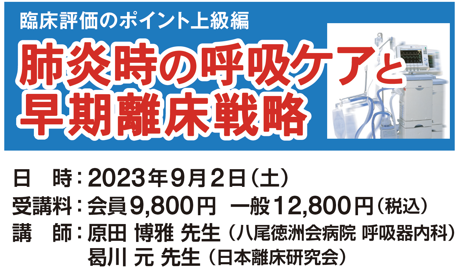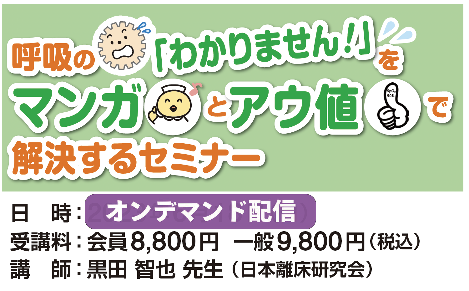 日本離床学会がオススメする「呼吸ニガテ克服プログラム」が4 回シリーズとなって開催されます! このプログラムでは、ベテランの講師が“ 呼吸器疾患患者さんの離床に必要な知識” を徹底解説。 臨床的なデータの解釈やフィジカル所見、さらに呼吸器の病態から機器のチェックまで、ゼッタイに必要な離床の知識を完全網羅します。 さあ、一緒に自信を持って患者さんのケア・離床を進めてみませんか ?