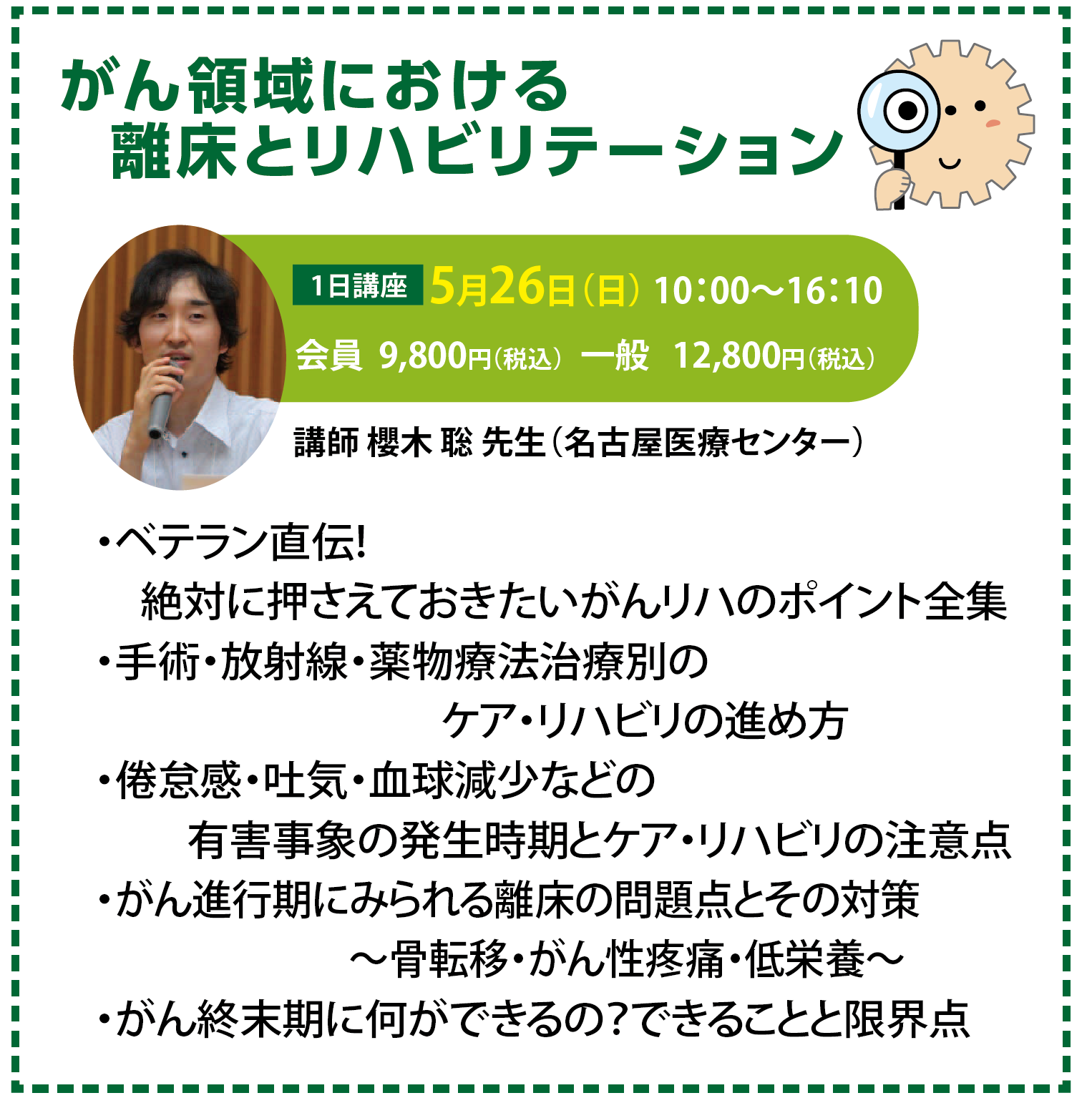 がんの治療による有害事象、原発巣によって異なる症状、終末期の痛みや呼吸苦・精神障害…がんのいくつもある難所に出会った時、無難な対応に終始していませんか?この難所を避けて楽な道に逃げていると、ベストな選択には辿りつけません…そこでこの新コースでは、がんの看護ケア・リハビリに関わるスタッフが知るべき難所とその攻略する術を徹底解説。多くの情報から「ここがポイント」という技を医師・看護師・PTの各職種から学びます。さあ、あなたも長年がん領域に携わるベテラン講師によりエビデンスと経験知を学んで、臨床力をアップしてみませんか?