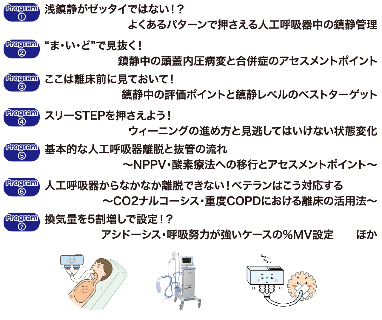 日進月歩の人工呼吸器の領域。新しい知識を知らないために、細かいモードや設定に合わせたケアや離床を行うことができずに、患者さんがキケンにさらされていることも・・・。この講座では、人工呼吸器管理のトップランナーから、人工呼吸器の基礎から今押さえておくべき最新知識まで、4つのテーマで徹底解説してもらいます。これから人工呼吸器の勉強する人はもちろん、エキスパートの職人芸を身につけたい人も注目のコースが、いよいよ開講します! 秘密のレシピで安全な離床を実現してみませんか?