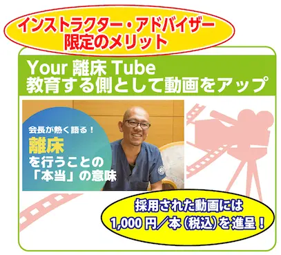 “Your 離床 Tube ”プレミアム会員になれば見ることのできる新コンテンツですが、離床インストラクター・アドバイザーの方は教育する側として動画をアップすることができます。