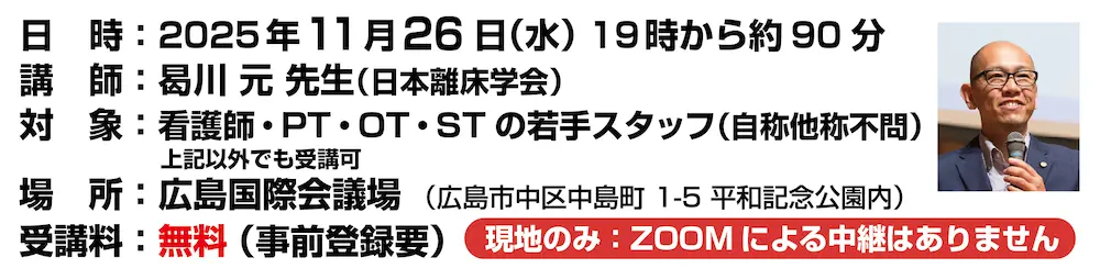 対象:看護師・PT・OT・STの若手スタッフ(自称他称不問)左記以外でも受講可